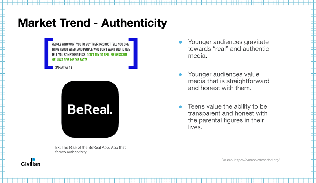 I developed the Meet the Real You concept, a campaign framing that repositioned prevention as a way to protect your evolving identity during a critical developmental window. Rather than fear or restriction, the message centered agency, authenticity, and self-expression.